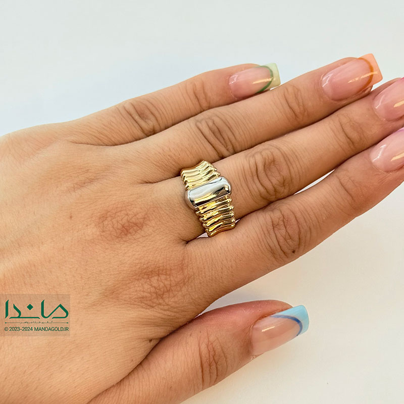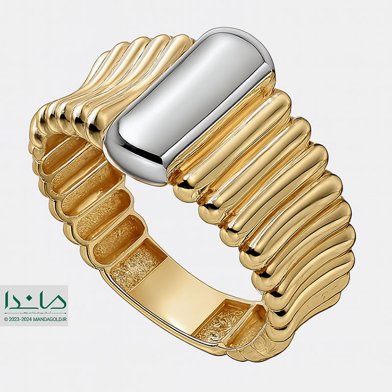 انگشتر دنده ایی – این محصول از تراش دنده ایی مانند ساخته شده که در وسط آن یک سطح ربراق سفید رنگ تشکیل شده که نمای کار رو بسیار زیبا کرده .