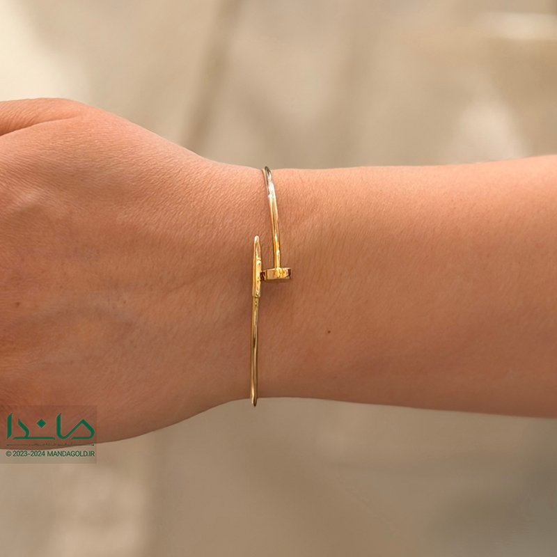 بنگل میخ کارتیه لاو – این دستبند که بدون قفل هست داخل دست بسته میشود و نمای خیلی خوبی دارد تفاوت بنگل ها با دستبند های النگویی نداشتن قفل در داخل آنهاست . البته مقاومت و امنیت بسیار بالایی دارد و میتوانید بصورت دائم استفاده کنید .