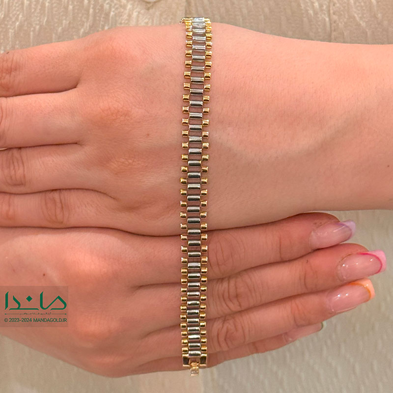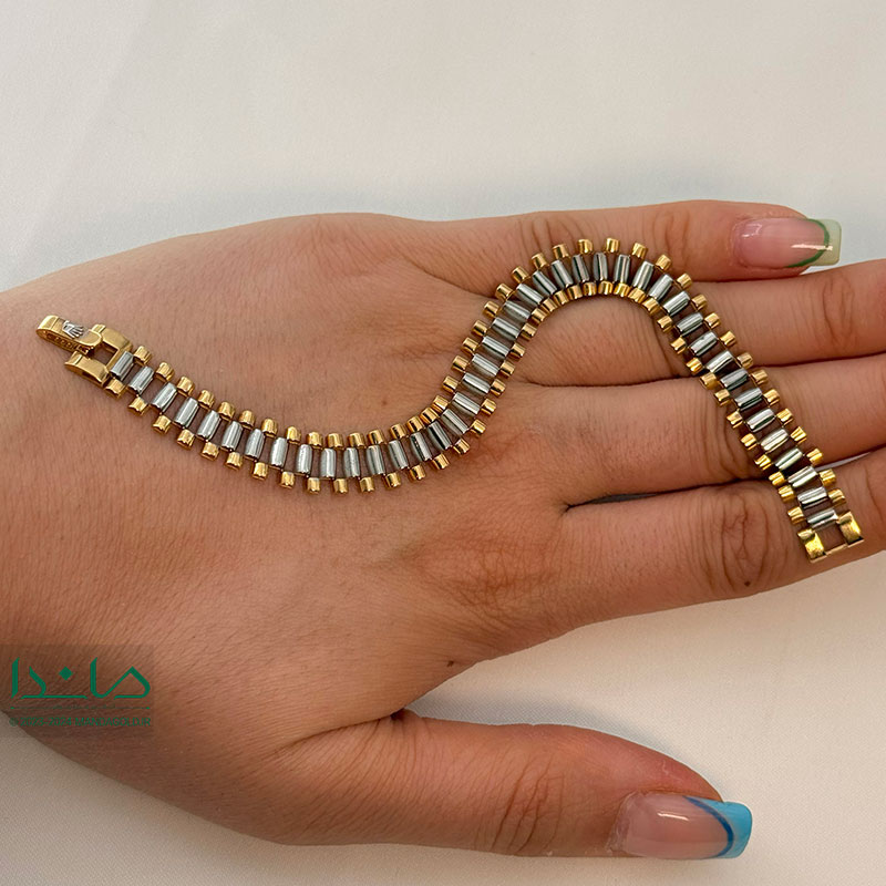 بیزدستبند رولکس ۵ رج به قطر ۹ میلیمتر این محصول از قفلی مطما ساخته شده و مقاومتی عالی دارد نمای کار نسبت به وزن مناسبش عالی هستش و اجرتی مناسب دارد