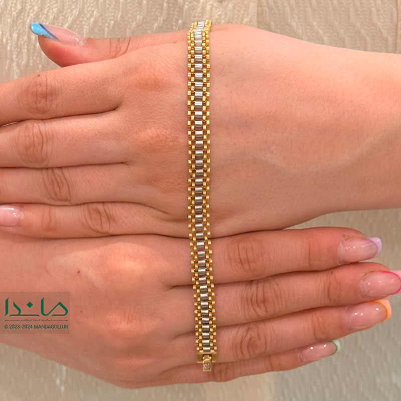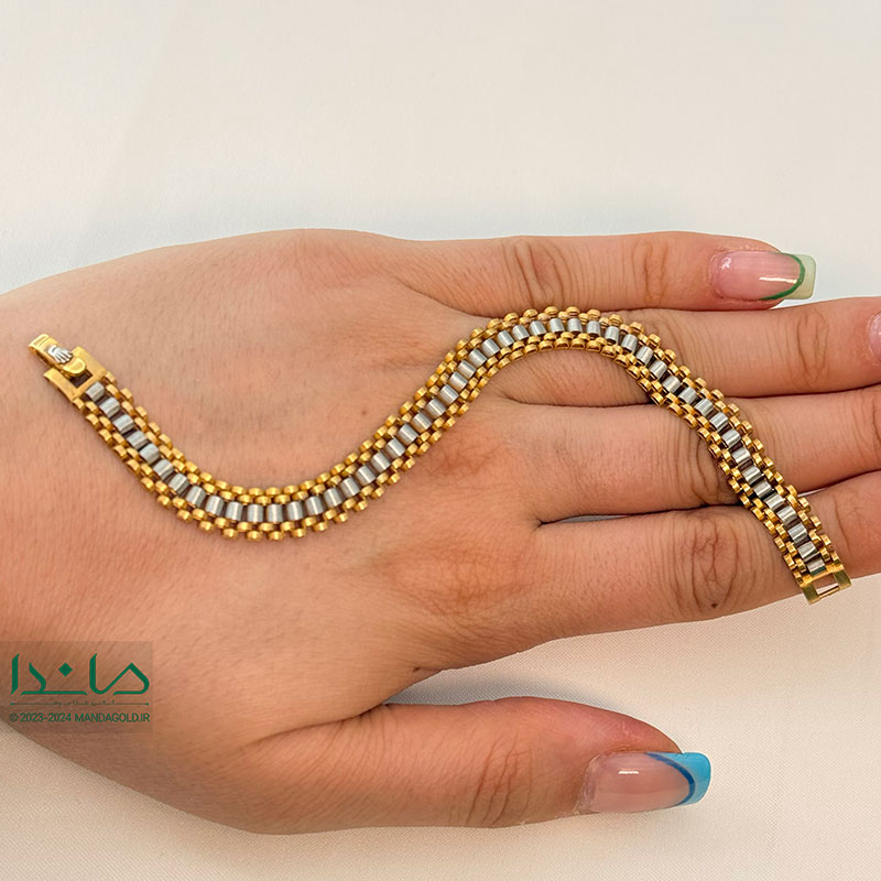 دستبند رولکس ۵ رج به قطر ۸ میلیمتر این محصول از قفلی مطما ساخته شده و مقاومتی عالی دارد نمای کار نسبت به وزن مناسبش عالی هستش و اجرتی مناسب دارد