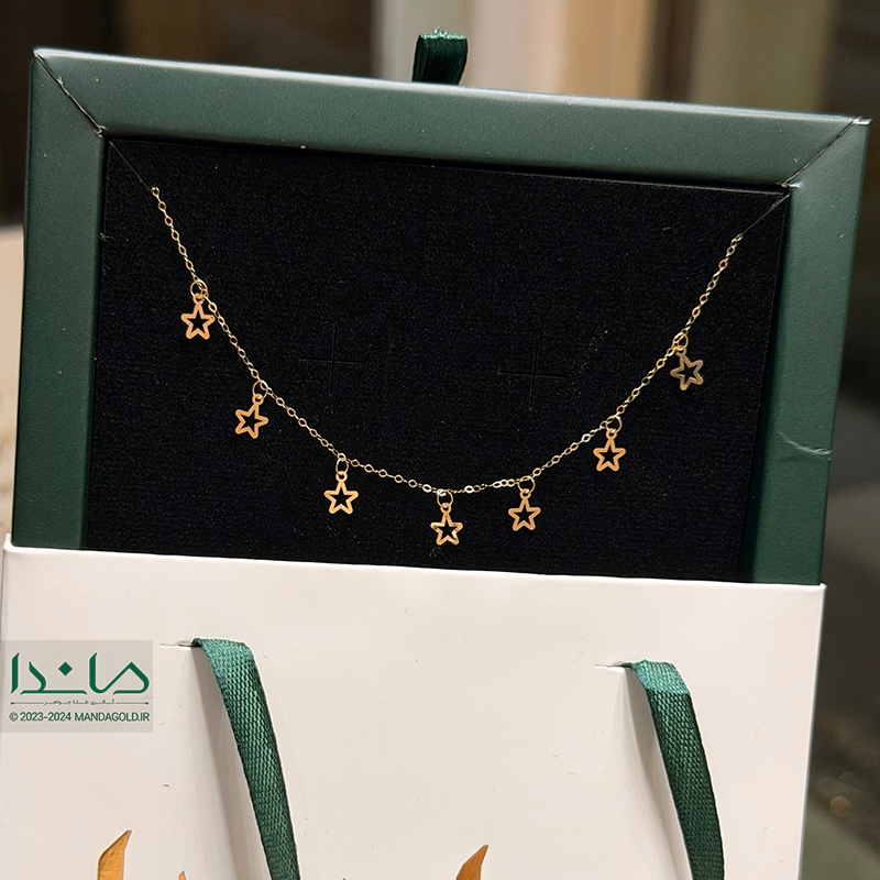 گردنبند پولکی ستاره که از آویز های پولکی ستاره تشکیل شده ساخته شده و به دلیل نمادار بودن و درخشش زنجیر بسیار کار نمادار و زیبایی میباشد .