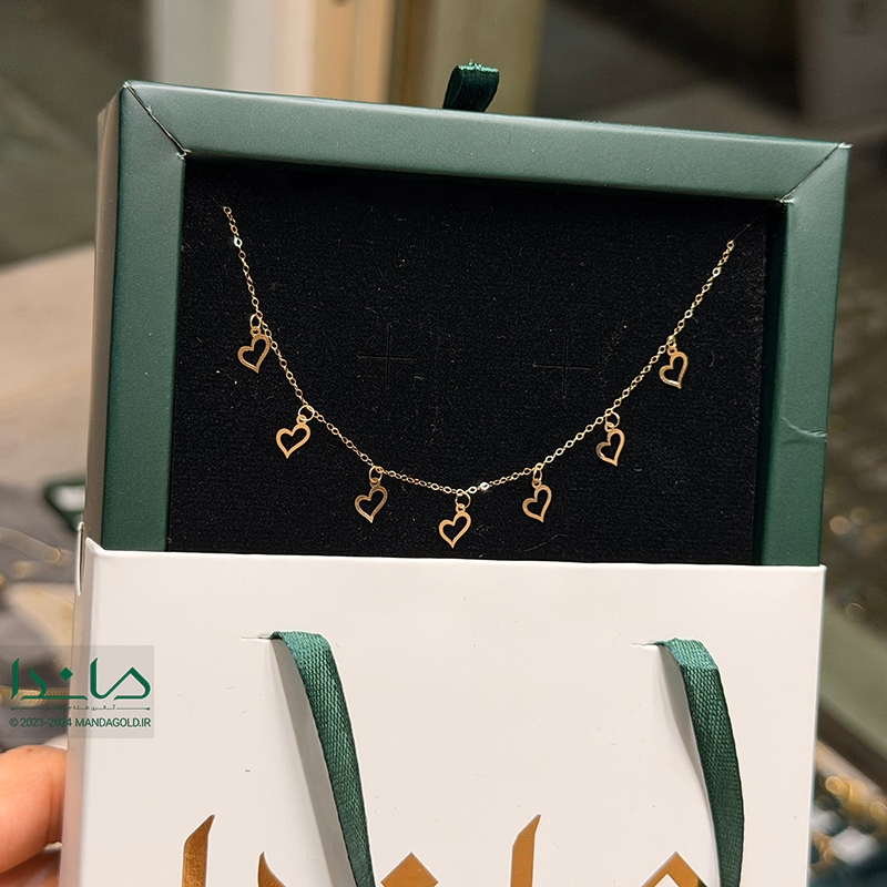 گردنبند پولکی قلب که از آویز های پولکی قلب تشکیل شده ساخته شده و به دلیل نمادار بودن و درخشش زنجیر بسیار کار نمادار و زیبایی میباشد .